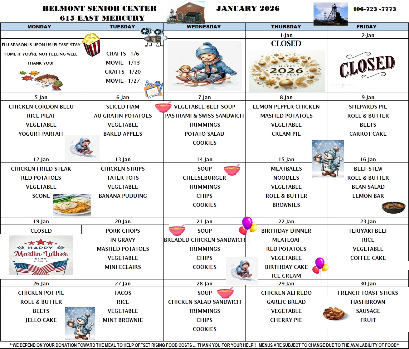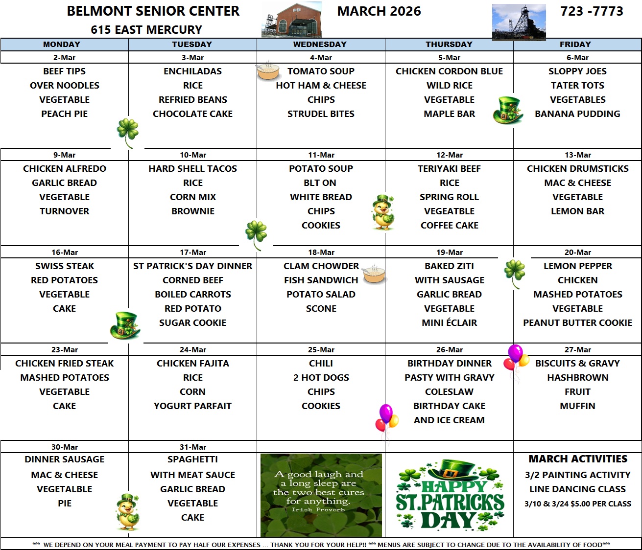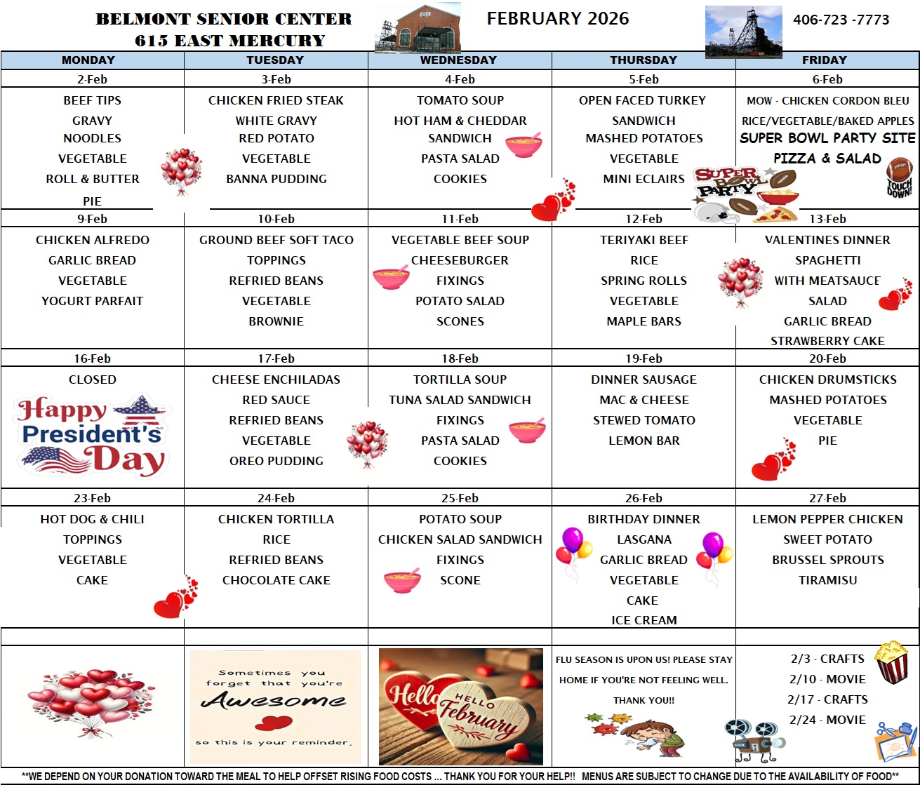 Click “View Menu” above to see the Belmont Senior Center lunch menu for the month or visit our Facebook page to see a daily post detailing the day’s menu.